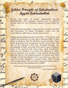 Golden Principle of Salaahuddeen Ayyubi Rahimahullah (1)