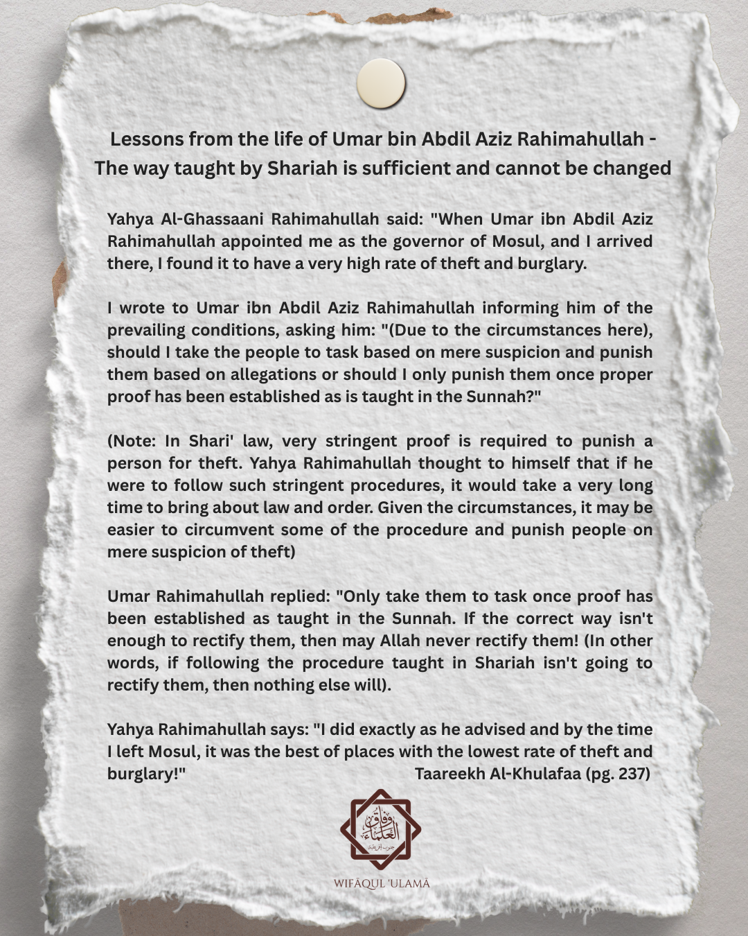 Lessons from the life of Umar bin Abdil Aziz Rahimahullah – The way taught by Shariah is sufficient and cannot be changed 18/12/2025 Taleem To download the PDF, click: DOWNLOAD